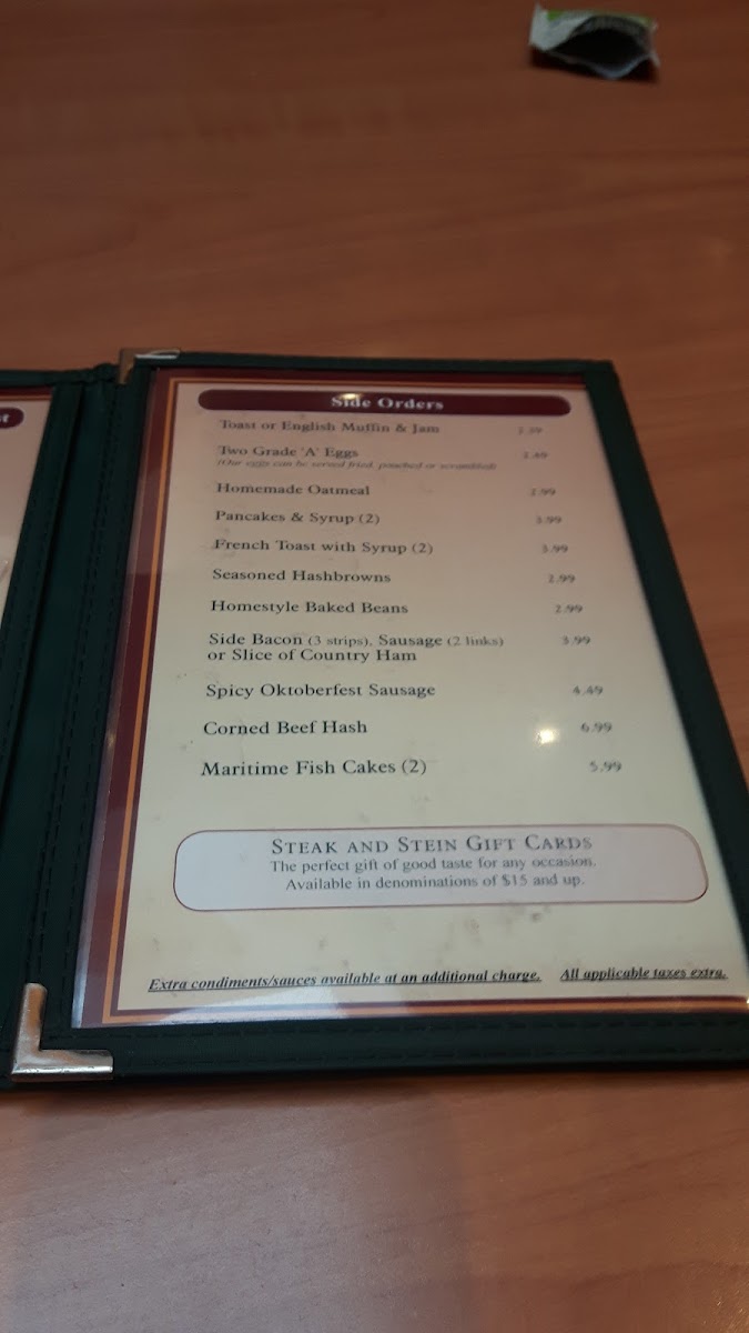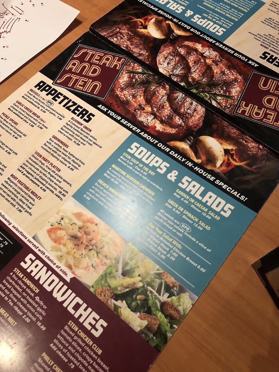 Welcome to the Steak and Stein Family Restaurant, where hearty meals and warm hospitality come together for a delightful dining experience. Located at 620 Portland St, Dartmouth, NS, our menu is a celebration of classic favorites and mouthwatering specialties that promise to please every palate. From juicy, expertly grilled steaks that melt in your mouth to our signature hearty steins of flavorful craft brews, there's something for everyone to enjoy. Don't miss our delectable sides and delightful desserts, all made with fresh ingredients and a generous dash of love. Come on in and let us treat you to a memorable meal that will keep you coming back for more!